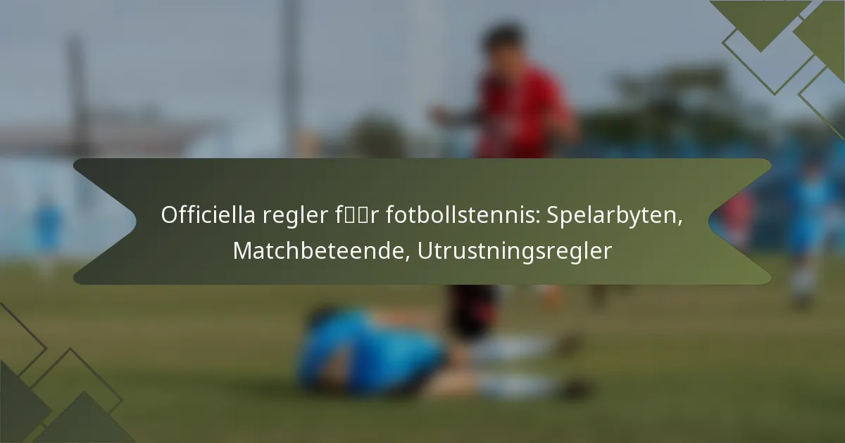 Fotbollstennis kombinerar element från både fotboll och tennis, reglerat av specifika regler som förbättrar fair play och strategi. Nyckelregler inkluderar riktlinjer för spelarbyten, matchbeteende och utrustningsstandarder, vilket säkerställer en konsekvent och respektfull miljö för alla deltagare. Att förstå dessa regler är avgörande för både spelare och domare för att upprätthålla spelets integritet.