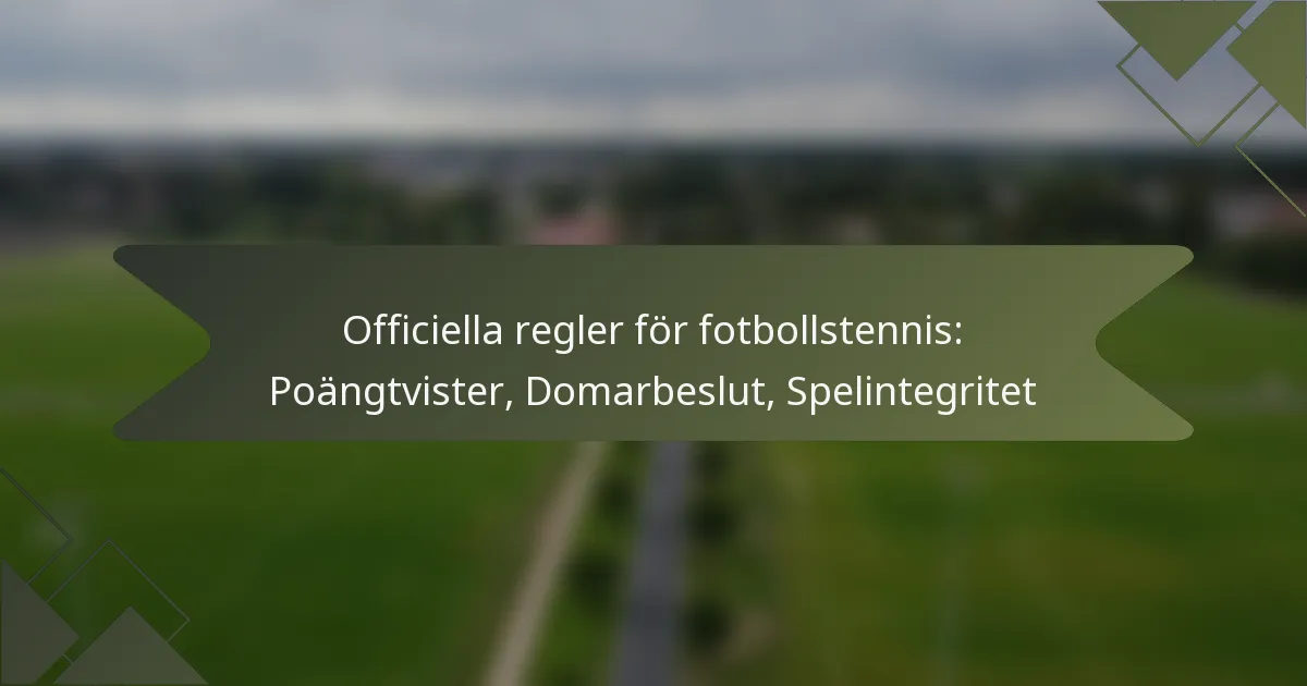 Fotbollstennis är en engagerande sport som förenar färdigheterna från fotboll och tennis, där spelarna använder sina fötter för att slå en boll över ett nät på en avsedd plan. Spelets integritet bygger på tydliga regler angående poängdispyter och domarnas auktoritet, som säkerställer rättvist spel och upprätthåller de fastställda reglerna. Effektiv kommunikation mellan spelare och domare är avgörande för att lösa konflikter och upprätthålla en konkurrenskraftig atmosfär.